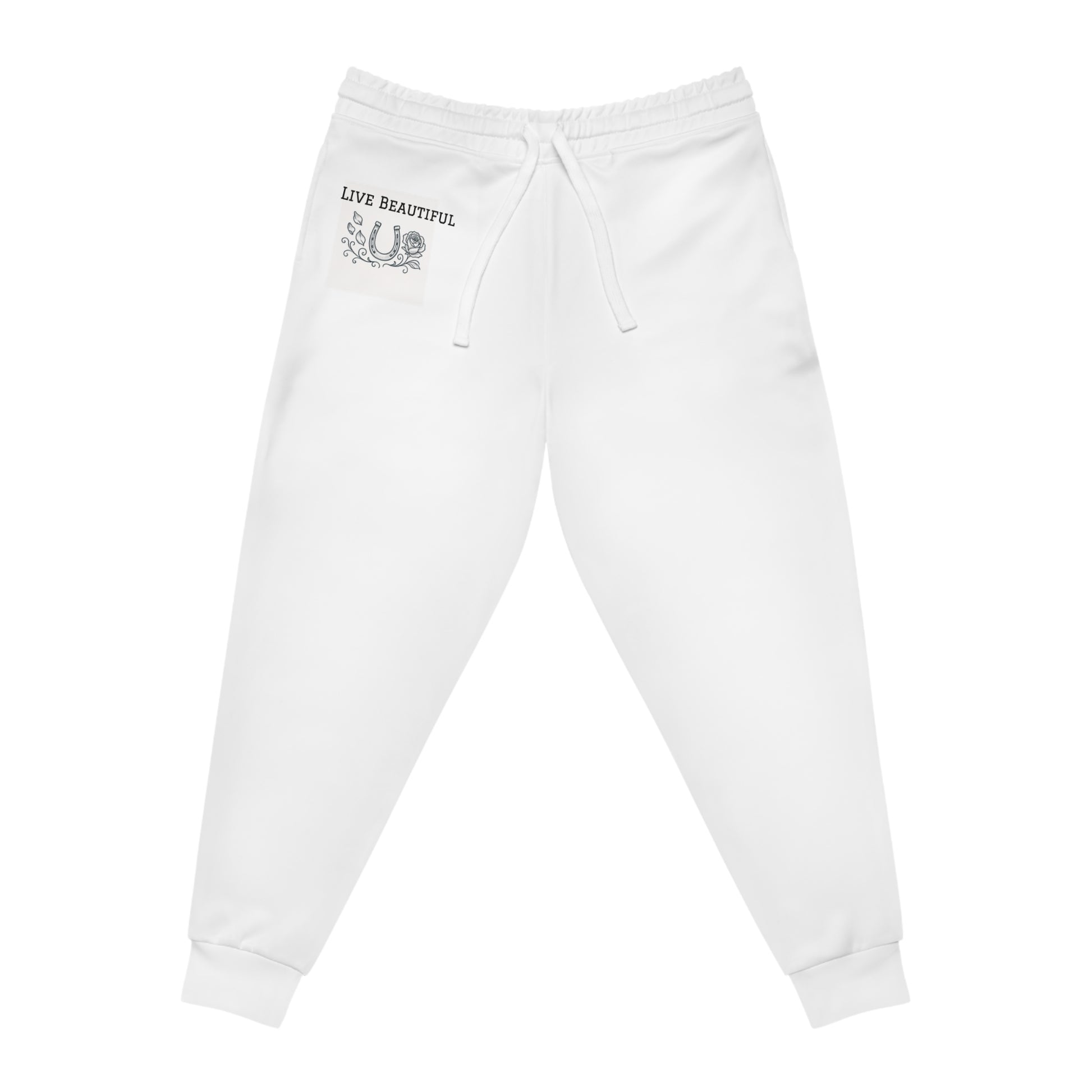 Live Beautiful Athletic Joggers | Horseshoe Rose Petal Pocket , White, Comfortable Activewear for Fitness Lovers, Casual Wear, Gift for Athletes, Workout Pants, Lounge Wear