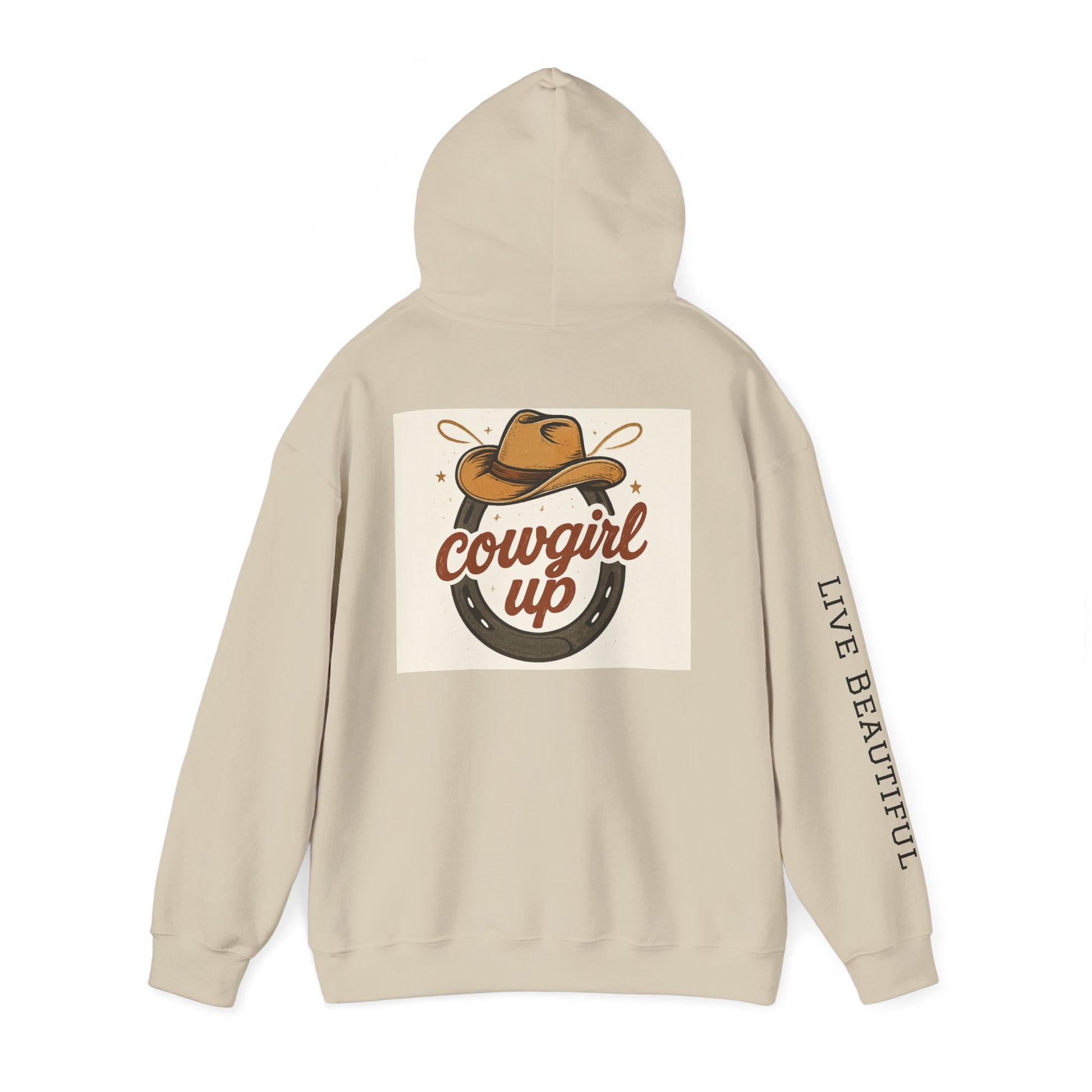Live Beautiful Hoodie- Cowgirl Up Hooded Sweatshirt, Western Fashion, Equestrian Gift, Comfortable Everyday Wear, Perfect for Cowgirls