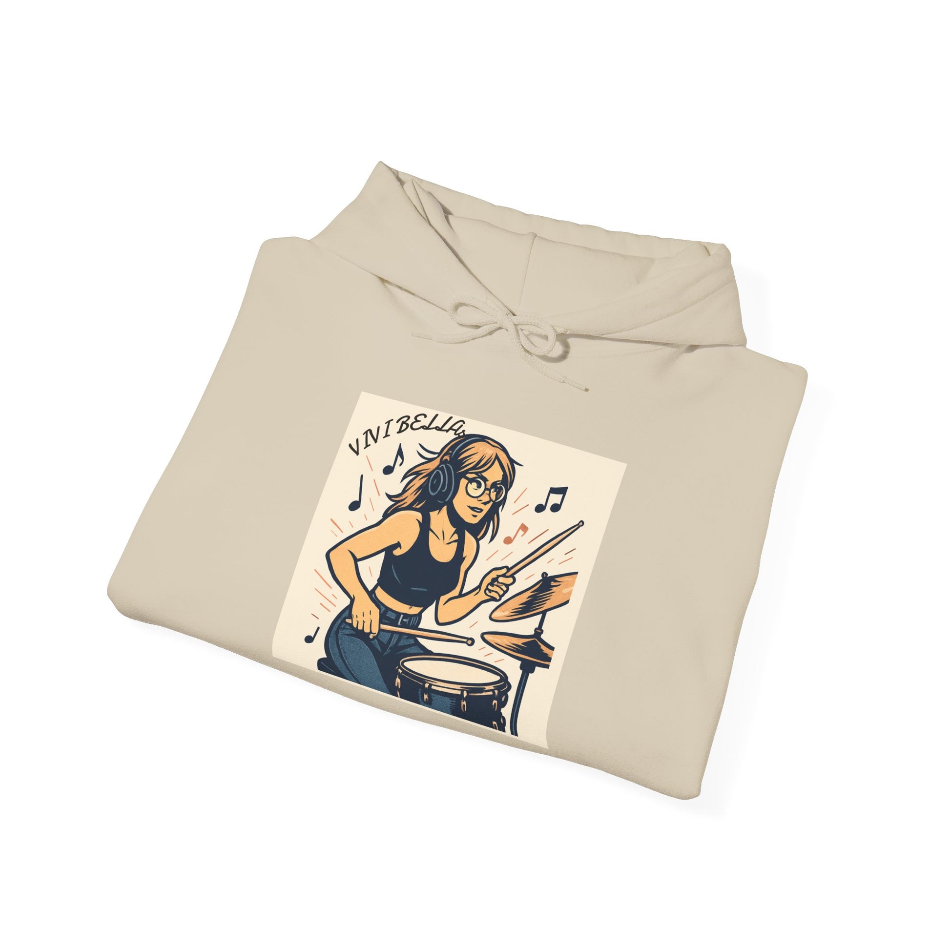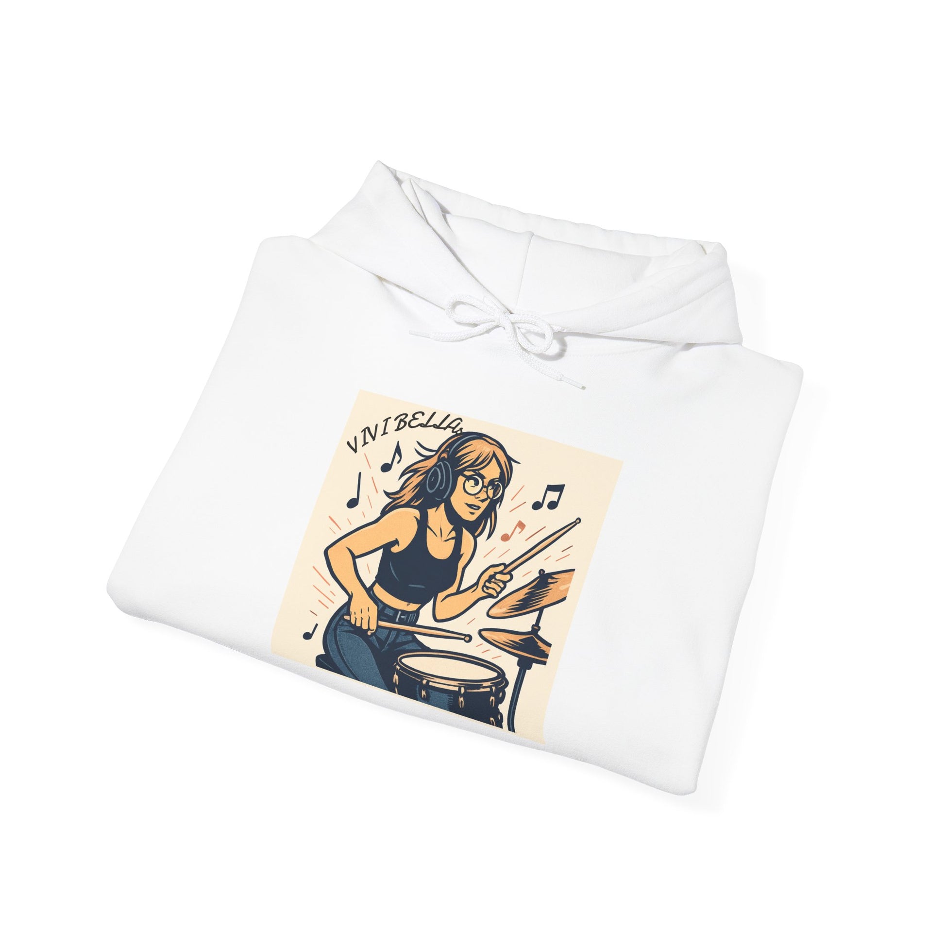 Live Beautiful Hoodie - Girl Drummer Hooded Sweatshirt- Vibrant, Inspiring, Comfortable, Perfect for Musicians, Gifts for Music Lovers, Casual Wear, Festivals
