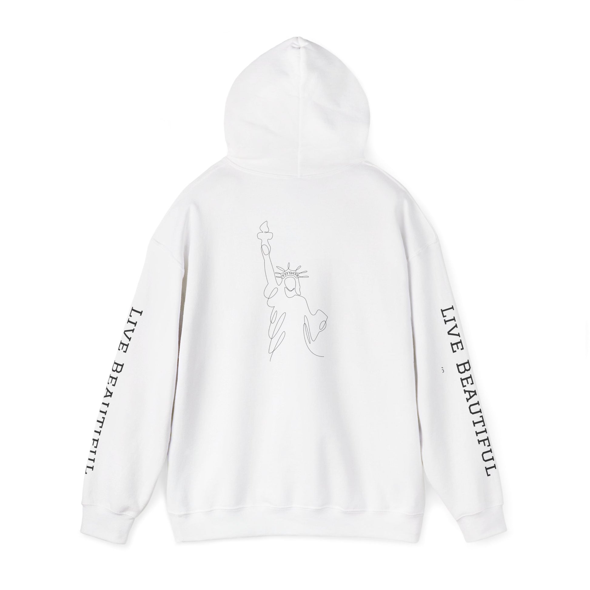 A soft, cozy hoodie with quiet, hopeful messaging that slips into your everyday rhythm. Clean black typography on a white canvas reads “It’s your Life” on the chest, framed by a subtle ring of words — Laugh, Love, Liberate — and bold sleeve text that repeats “LIVE BEAUTIFUL.” Lightweight-but-warm medium-heavy fleece, a double-lined hood and color-matched drawcords keep the look minimal and polished. Wear it when you need a gentle reminder to choose your own path, whether you’re running errands, lounging at home, or stepping out for a casual meet-up. The roomy kangaroo pocket and tubular knit body make it comfortable and low-fuss; the printed messages feel like a personal mantra rather than loud branding.