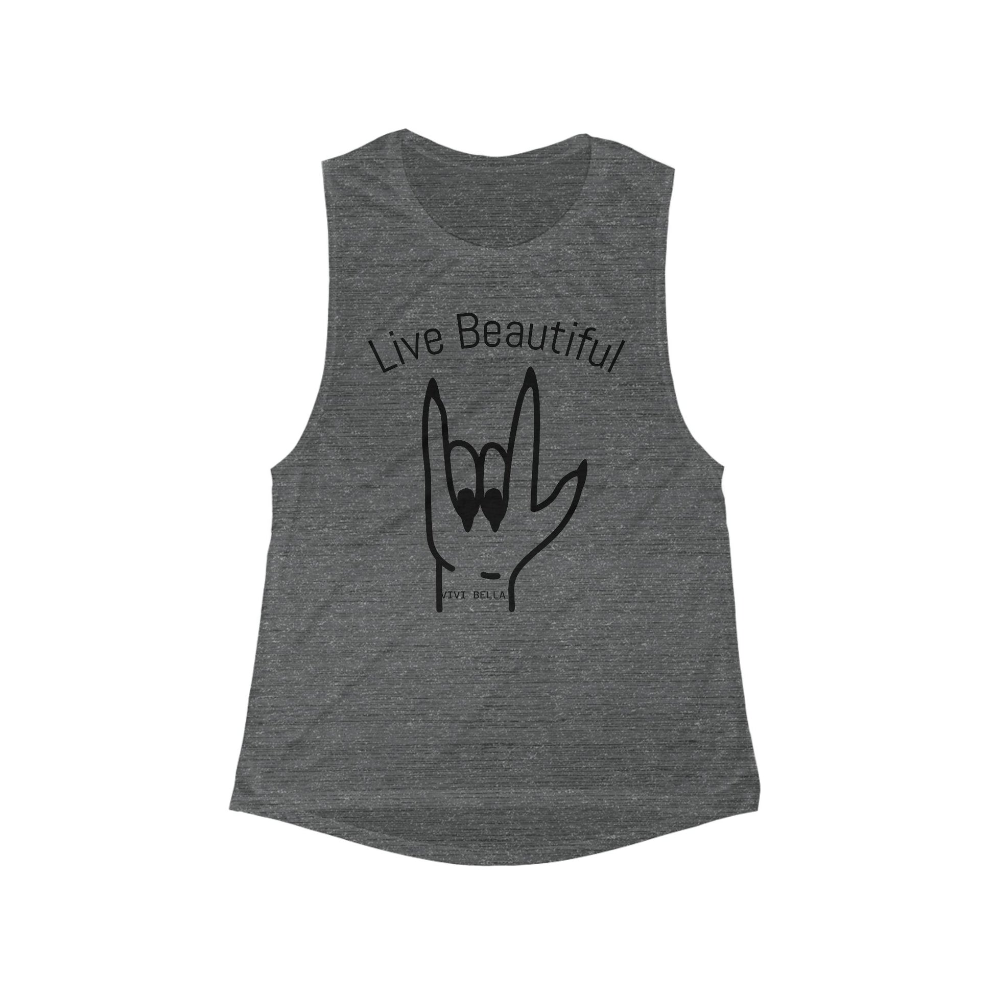 Live Beautiful Women's Flowy Scoop Muscle Tank, Inspirational Workout Shirt, Summer Yoga Top, Casual Tank for Women, Perfect for Gifts